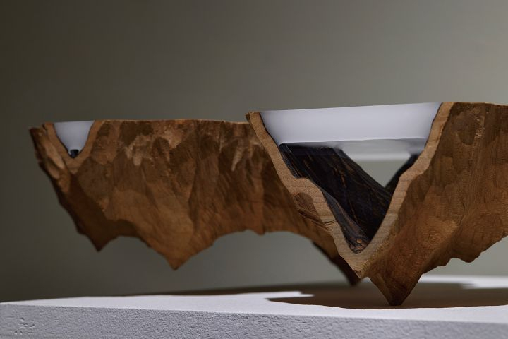 柄澤健介「氷洞」 木、パラフィン、胡粉 H100×W450×D255mm 2025年 撮影 / 大塚敬太