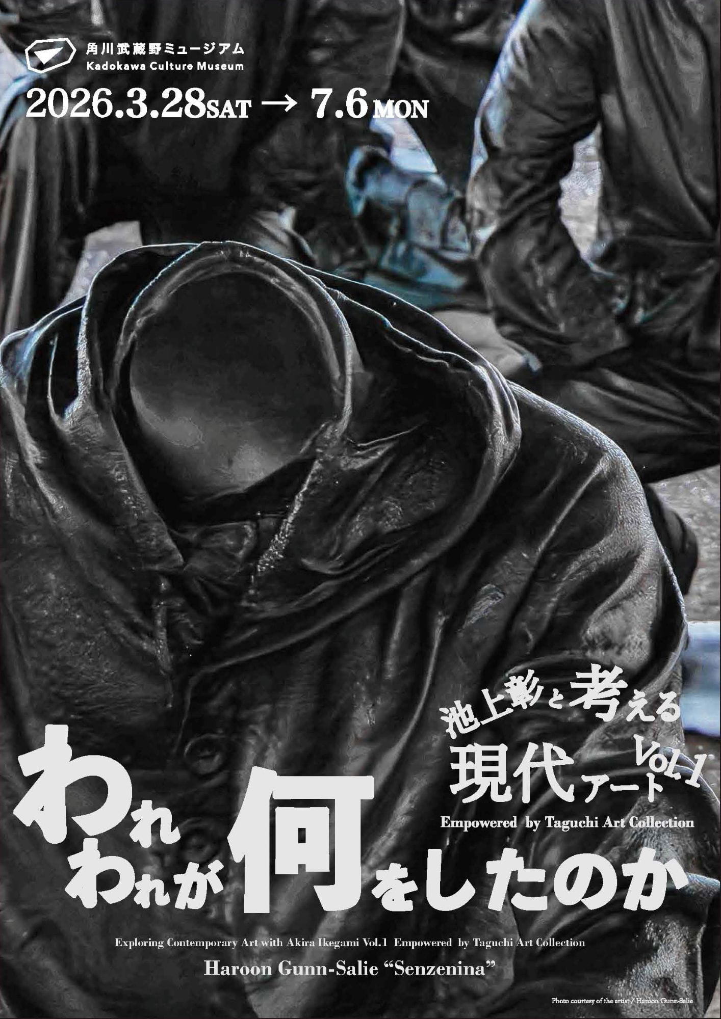 角川武蔵野ミュージアムとタグチアートコレクションの協力による、現代アート展シリーズ。本展では社会性の強い作品に焦点を当て、アートと社会という二つの文脈からその本質を読み解くもの。今回、その第一弾として、南アフリカの活動家でもあるハルーン・グン=サリーの《センゼニナ/Senzenina(われわれが何をしたのか)》を展示。アーティストであると同時に活動家でもあるハルーン・グン=サリー。2012年のマリカナ鉱山虐殺事件を題材とした本作は、彫刻を通じて社会の不正義を鋭く告発する。