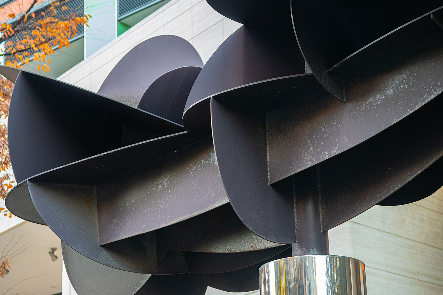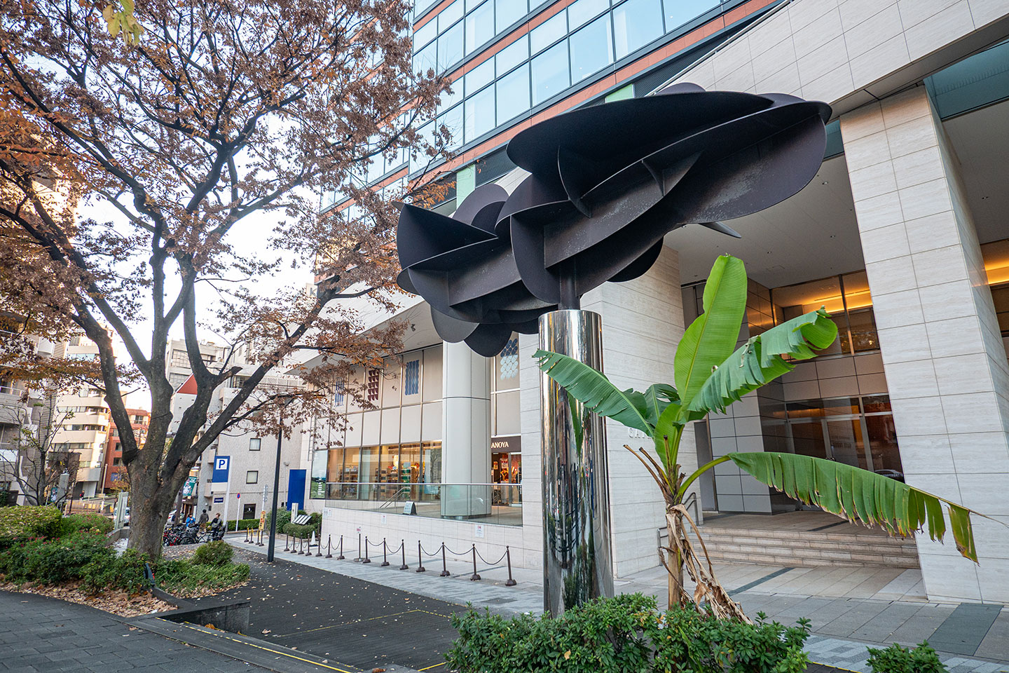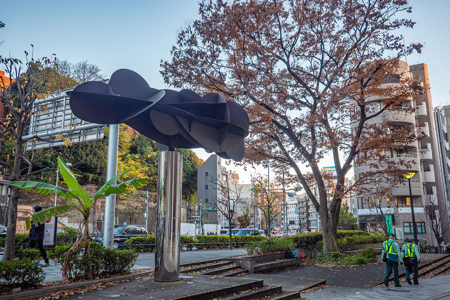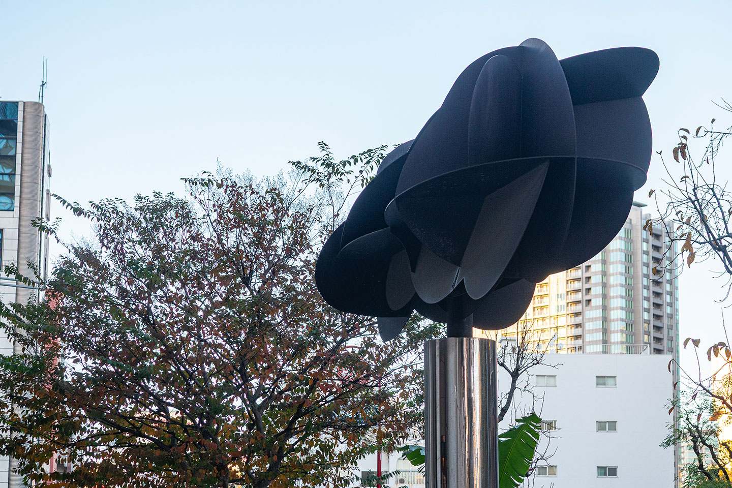 今回訪れたのは麻布十番と六本木の中間にある五十嵐威暢の彫刻作品。グラフィックデザイナーから立体表現に魅せられて彫刻家となった五十嵐。純粋な形を追い求めた五十嵐のキャリアとデザイン・美術におけるモダニズムを作品に観る。