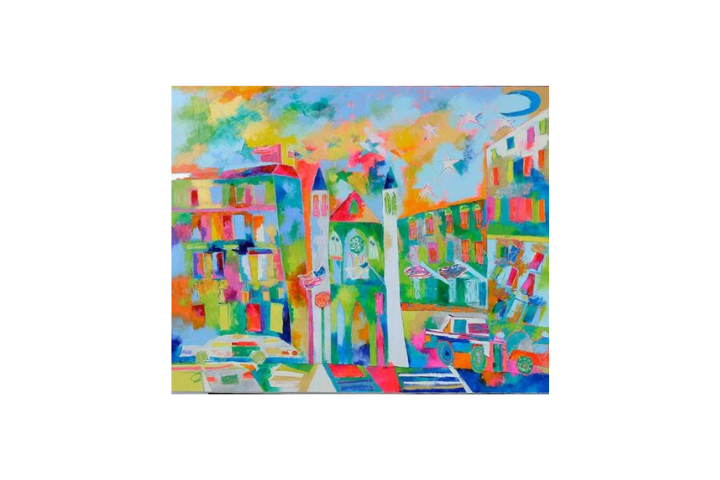 「この絵は個展「New youk」(2024年/BaBaBa)で発表したもので。即興的に描いた線を間違いがあっても肯定して描き進めた作品で、これは風景画で道を描いています。道って“こう行かなあかん”とかないわけで、どこに行ったって良い。本来、間違いってなんでしょうね?」