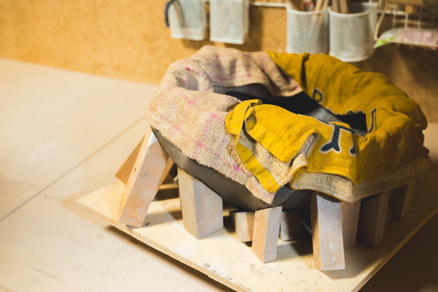 「当時はそこまで意識していなかったのですが、陶芸には技法や素材から造形が生まれる、という文脈がありますよね。それに自然と行き着いていたのかなと、後から思うようになりました。大学を卒業して数年経った頃、あの感覚をもう一度やってみようと思い立ち、空間を包むシリーズが始まりました」