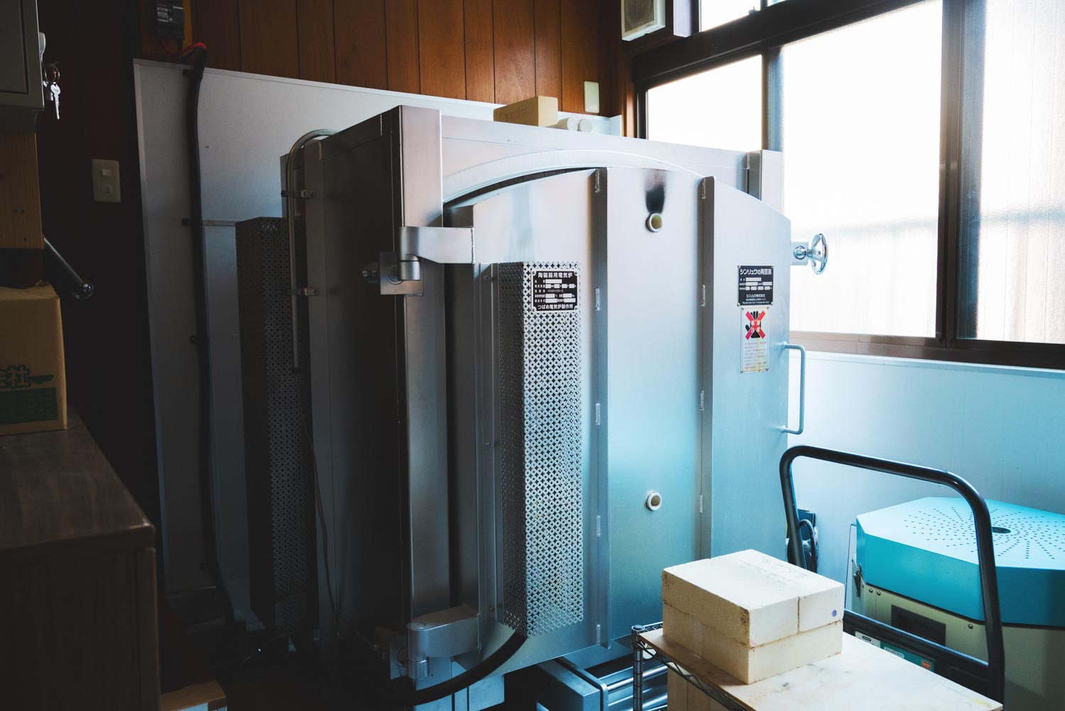 スタジオには電気窯が3台あり、写真はその中でも一番大きなサイズのもの。「陶芸家あるあるなんですけど、作品以外にも窯でピザを焼いて食べることもあります(笑)」