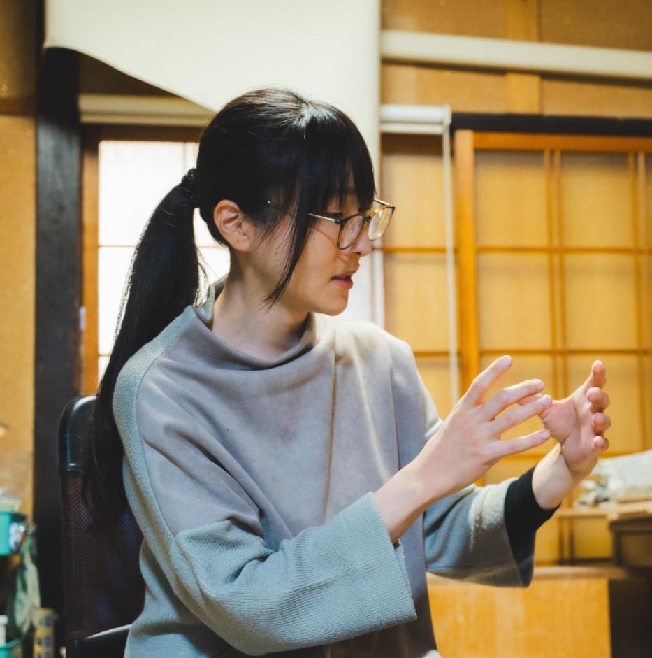 1989年愛媛県出身。2013年京都嵯峨芸術大学工芸専攻卒業。京都市立芸術大学大学院陶磁器専攻を修了。現在は京都に工房を構える。陶磁器が内包する空間と手びねりの技法から発想を展開させ、何かが布で包まれているような造形を制作する。