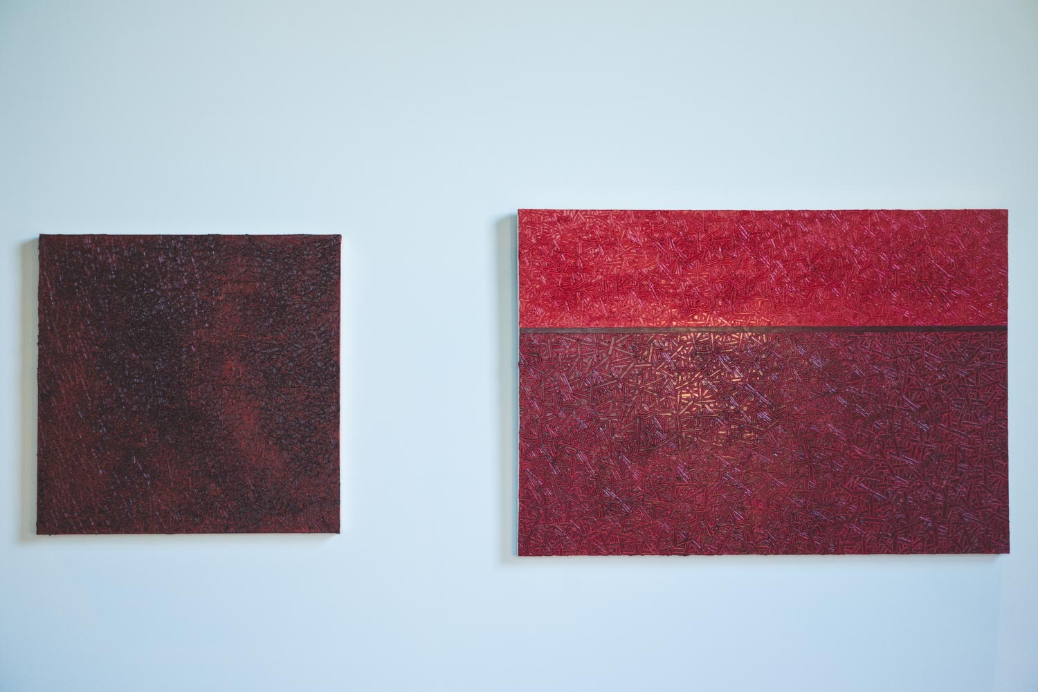“棒状の物体”を描きはじめたのは2018年です。大学時代、反復画法による抽象表現を自主制作で探求する中で、このモチーフが生まれました。短く太くすれば曲線的で柔らかな表現に、長く細くすれば直線的で鋭い表現へと変化します。その“棒状の物体”の持つ可塑性に惹かれたことがきっかけです。