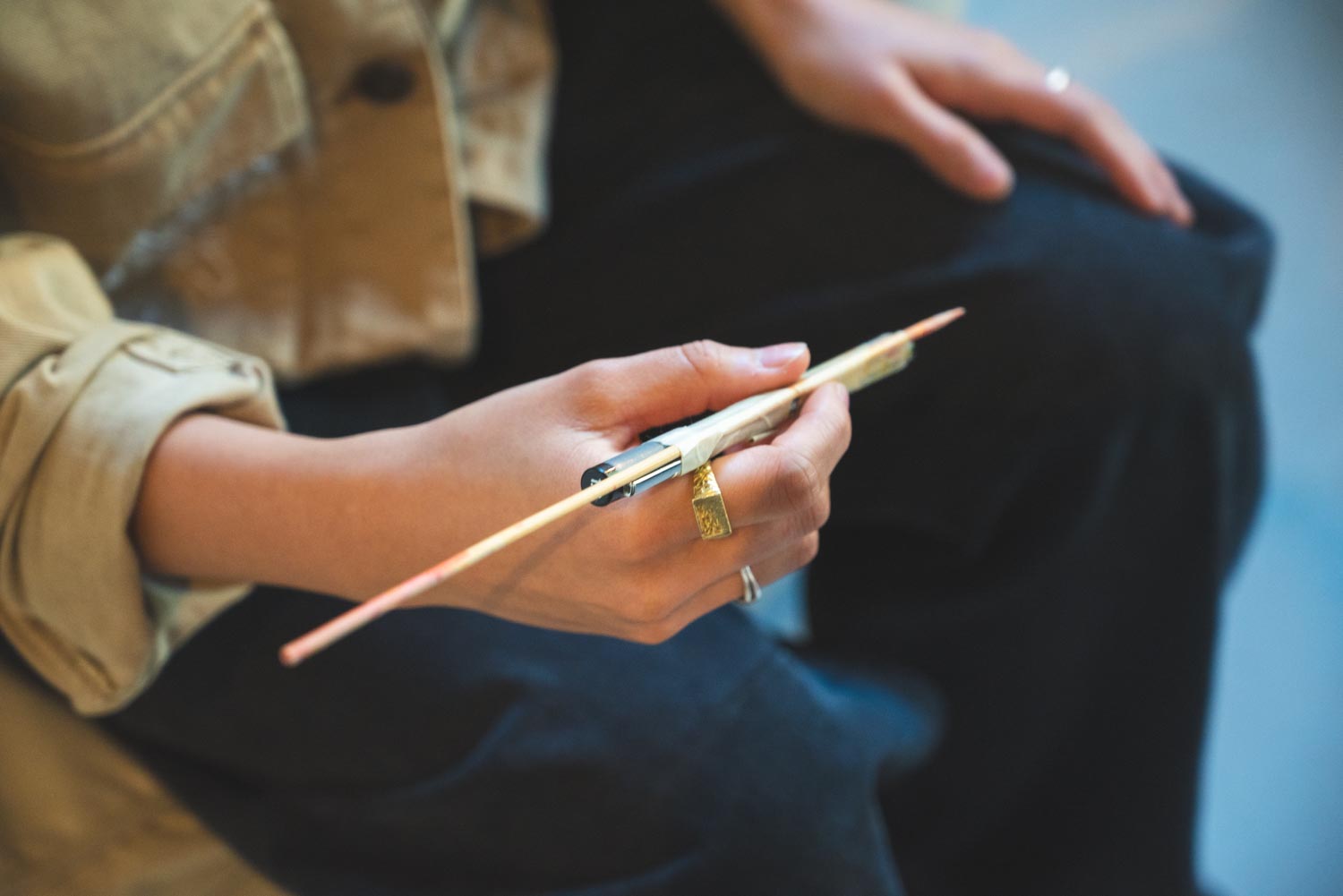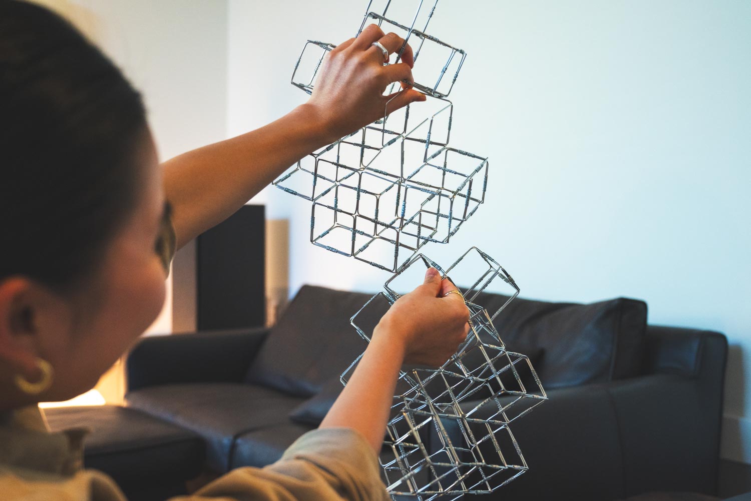 「国や年齢、性別、バックグラウンドも違えば考え方も一人ひとり違う。ロンドンでは、人それぞれの違いがごく自然に受け入れられている環境が当たり前でした。そんなロンドンで過ごした経験があったからこそ、今の作品で“個々の輝きと繋がり”というテーマを大切にしているんだと思います。太さも長さもそれぞれ違う棒状の物体が、重なり合い、繋がることで、一つの強いエネルギーになる。その感覚は、ロンドンで出会った人たちからの影響も大きいですね」