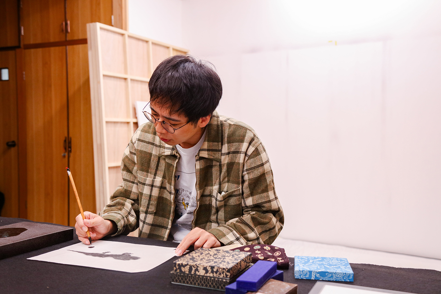 1993年神奈川県生まれ。旧・京都造形芸術大学大学院(現・京都芸術大学)ペインティング領域修了。その後、北京留学で語学勉強の傍ら、水墨画を用いてアニメーションなど手がける現代アーティスト・孫遜の制作の手伝いなどを行なう。帰国後は京都を中心に活動し、2022年から2025年の間は東福寺塔頭 光明院に住み込みで32面の襖絵を手がける。日本絵画の文脈、技法材料を用いながら、人々には見えない厄災、抵抗できない力が常に黒い何かに見立てられてきた歴史に着目し作品制作を行う。