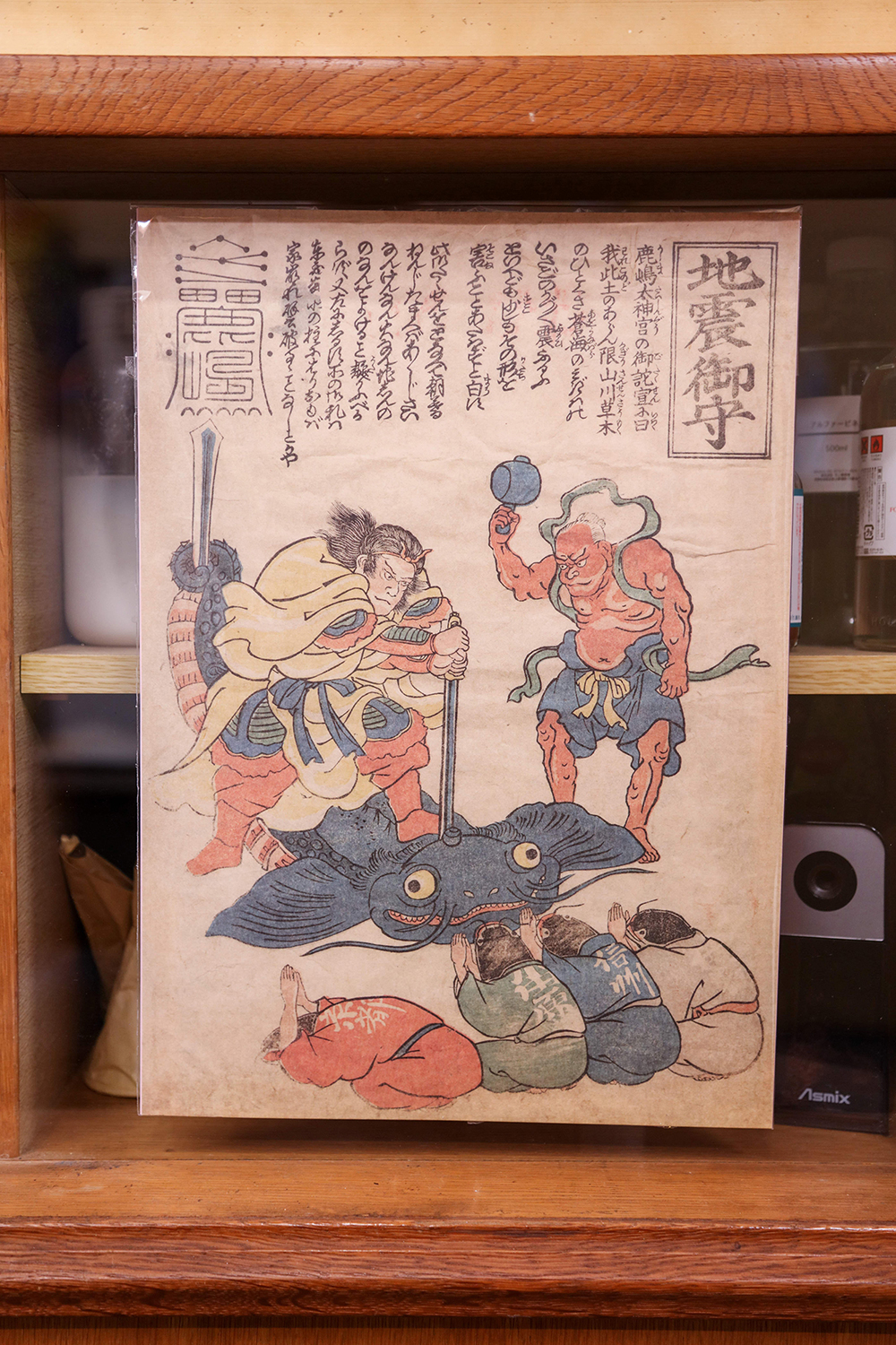 アトリエに飾られていた江戸時代の鯰絵のポスター