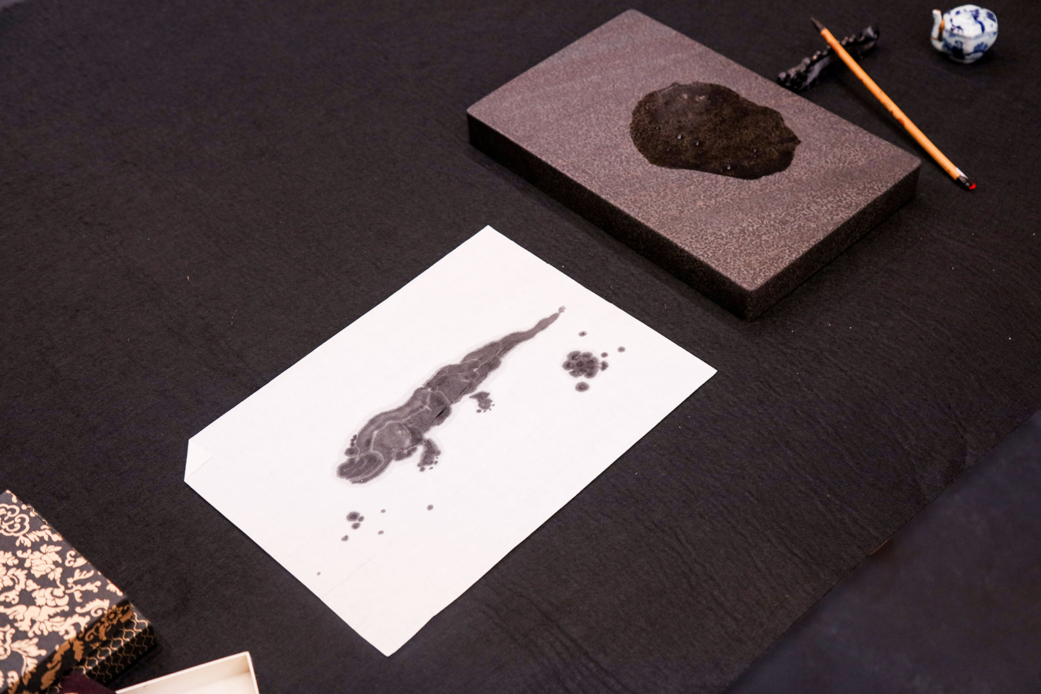取材の最後、撮影のために何か描いてもらえないかとお願いすると、丹羽さんは迷うことなく筆を取り、するするとオオサンショウウオを描いてくれた。少し照れたように笑いながら、こんな言葉を語っていた。