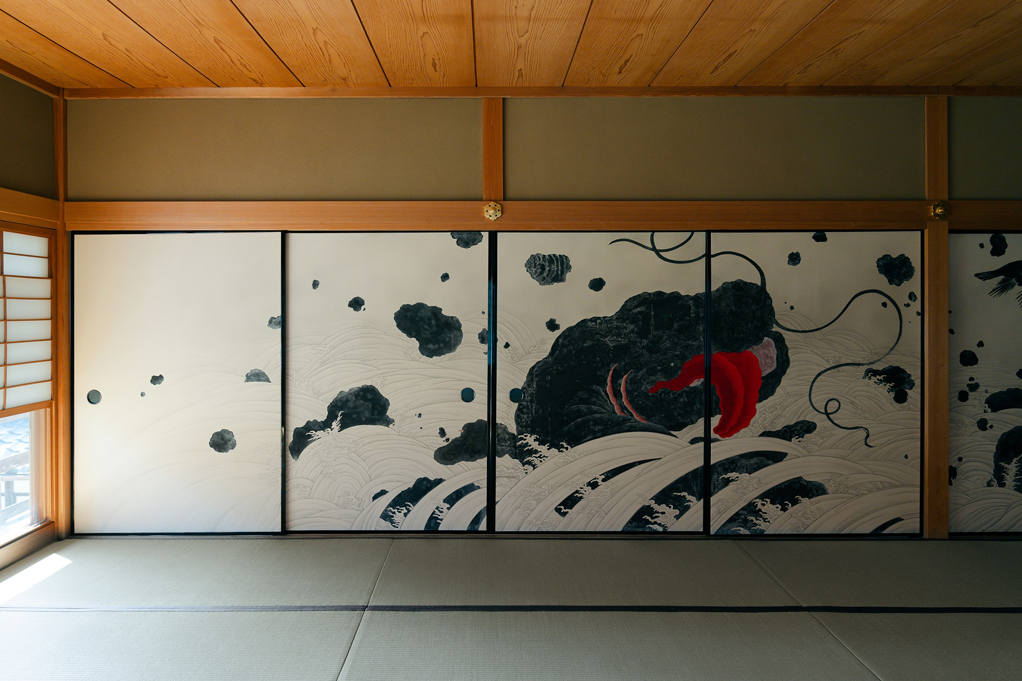 近年は襖絵やアートワークなど、依頼を受けて制作する機会も増えている。そこには、場所や人との関係から作品を構想する、丹羽さんらしい発想がある。