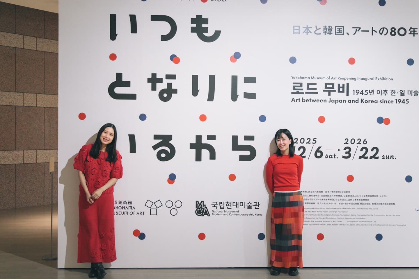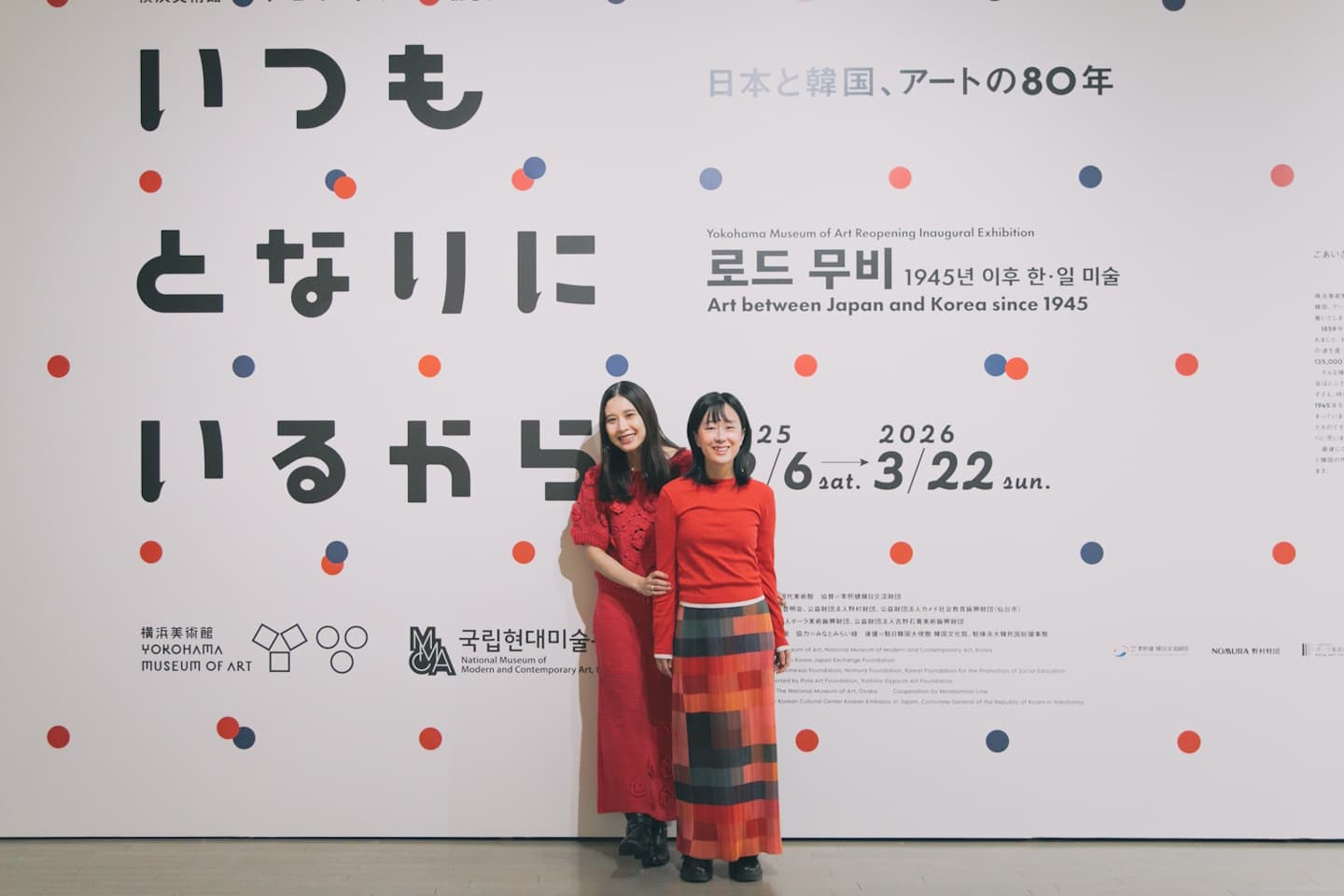 かつて日本による朝鮮半島の植民地支配が行われていた時代を経て、1965年の日韓国交正常化から60年。横浜美術館で2026年3月22日まで開催されている『いつもとなりにいるから 日本と韓国、アートの80年』は、そんな日本と韓国の関係性や歴史的なあゆみを美術の側面からとらえた展覧会です。この展覧会を、日本から韓国に留学した経験を持つ、モデルの前田エマさんと、韓国・釜山から日本に来て暮らしているアーティストのユンボムさんが鑑賞。
