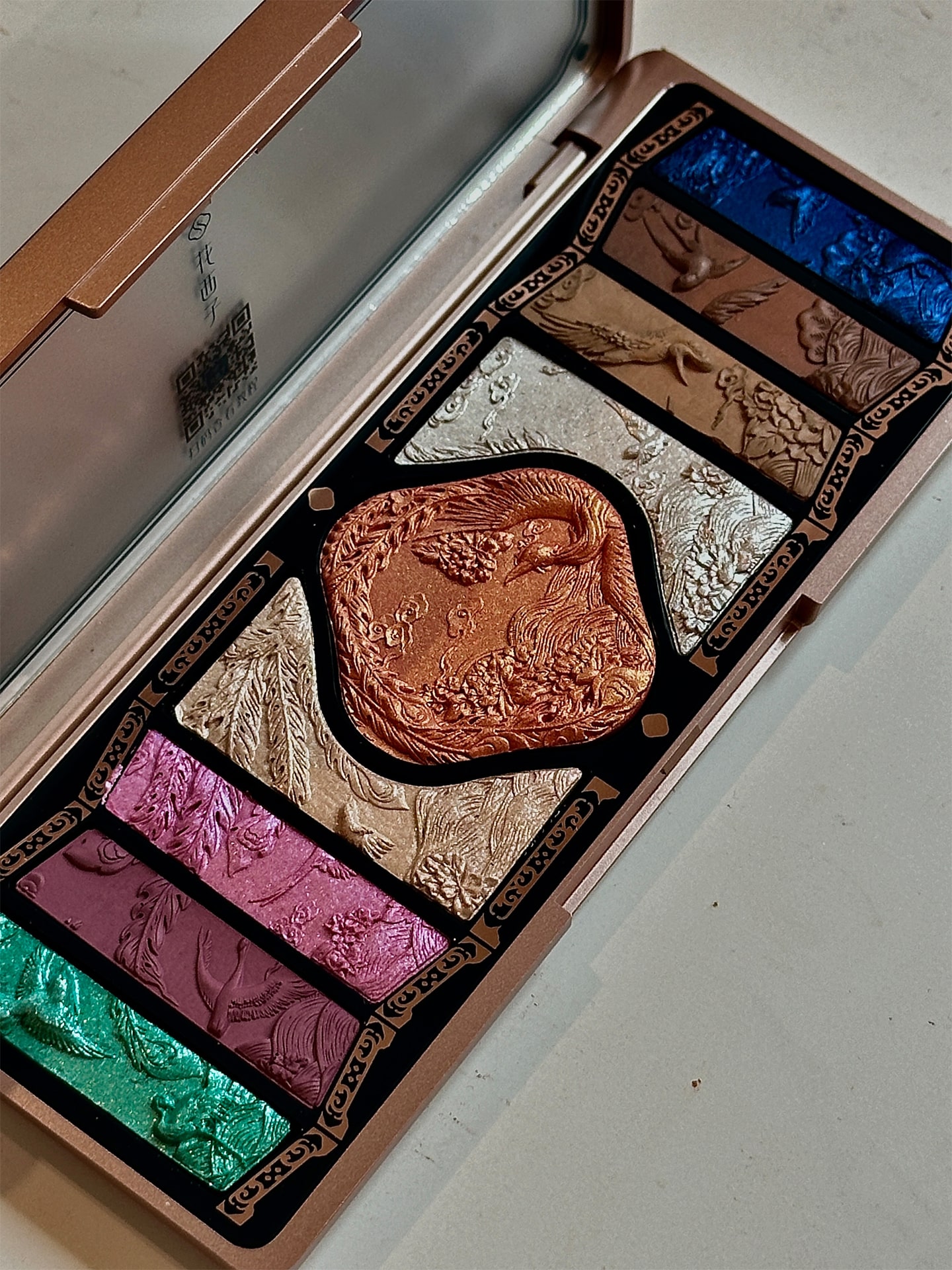 一色一色に彫刻が施された、FLORASISのアイシャドウパレット
