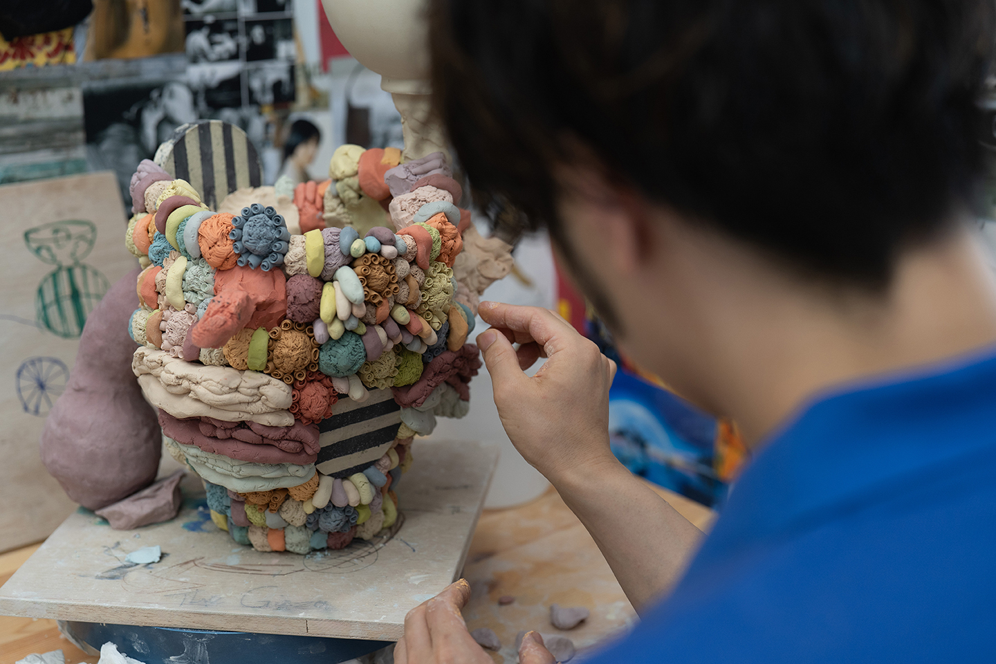 しかし、土を使ってつくっていく作業自体が、いろんなことを乗り越えさせてくれたのかもしれません。うまく言えないですが、ペインティングの時のように構える感じでもなく、自然と遊びながらつくっていったものが、何かしらの表現としてちゃんと形になっているんです。後から振り返ると「これってこういうことだったのかな」と思えるようになりました。
