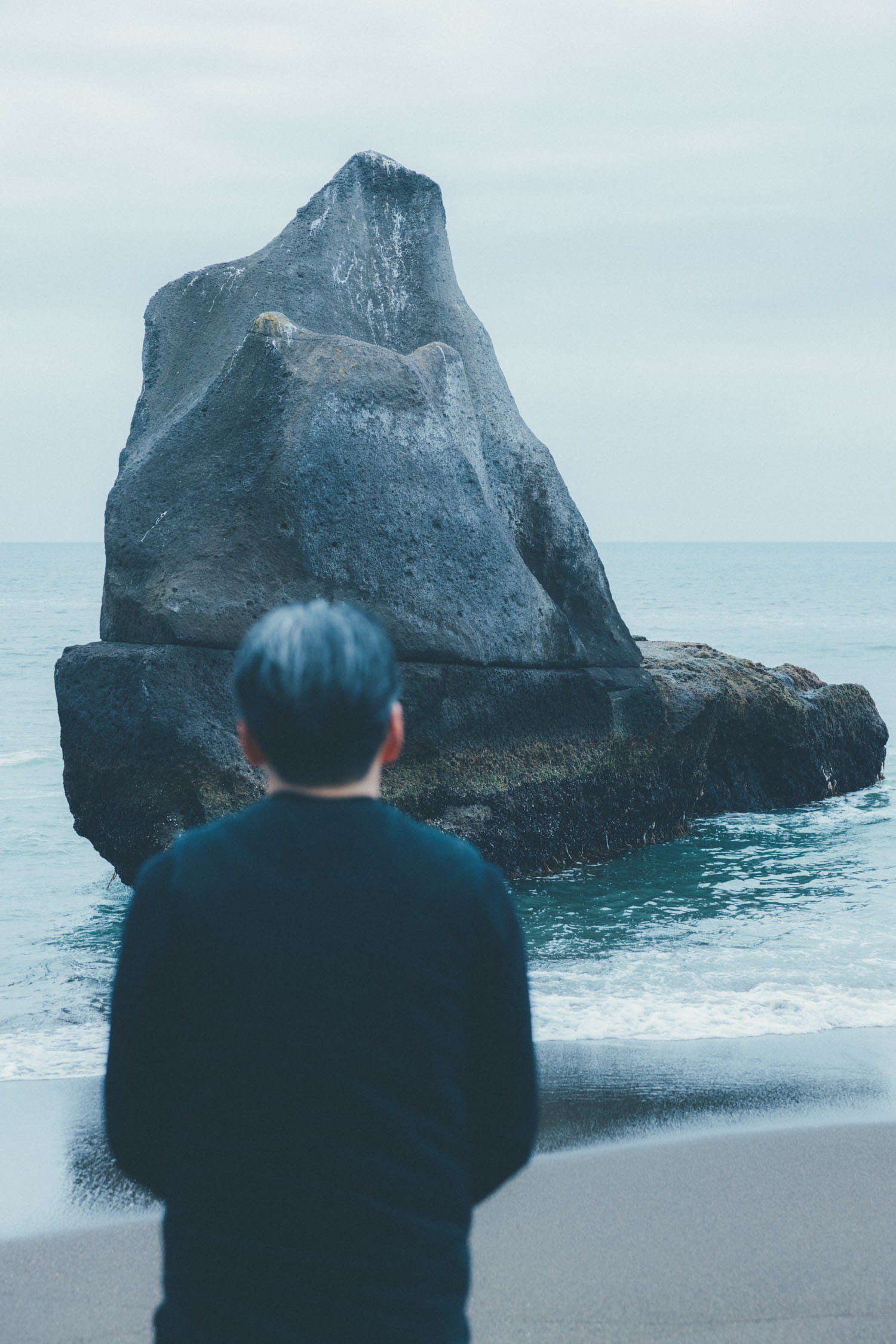 ふと行きたくなった時に足を運ぶ。海の少し先に見える大きな岩が好きで、なんだろう……あの岩に会いに来る、みたいな感覚でしょうか。夕焼けがきれいな日は空の色に目が奪われるけれど、曇っている時は岩の形やボリューム感がくっきりと見えてくる。すぐそこにあるように感じる時もあれば、波が満ちている日などは、ものすごく遠くに存在しているように感じます。