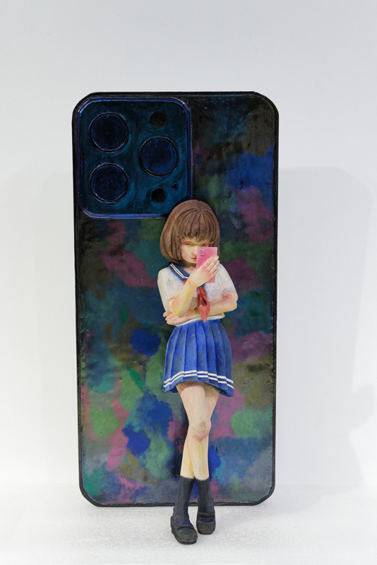 一方、舩木大輔は人体彫刻の新たな可能性を追求し、木彫による立体作品を中心に制作。日本人としてのアイデンティティを背景に、現代社会への視点をユーモアとアイロニーを交えて表現しています。