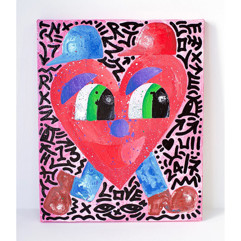 「Double Cap Love」Rob Kidney 作品サイズ22×27.3cm、Mixed media on canvas