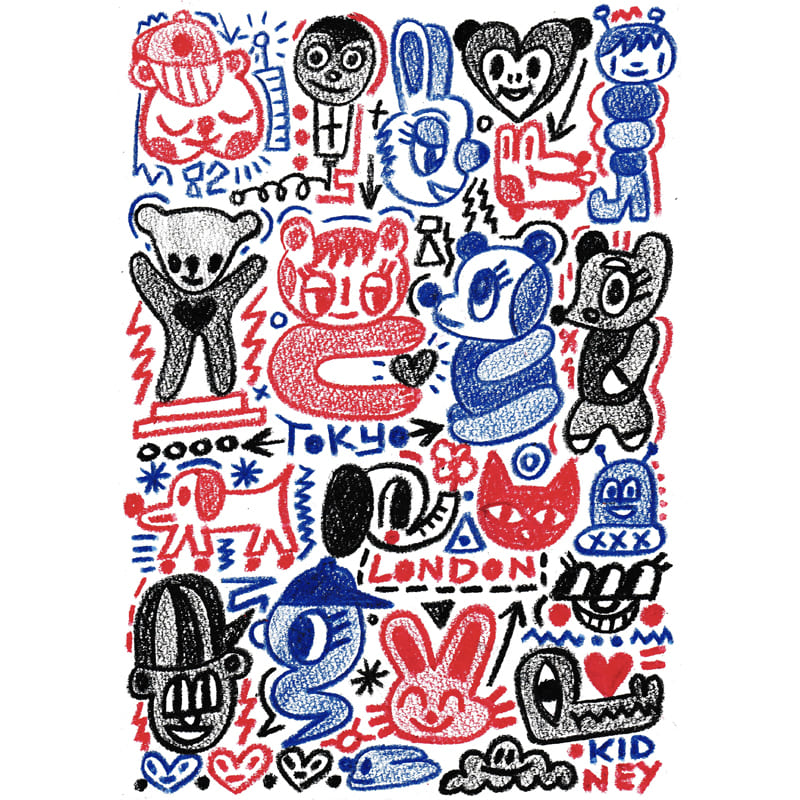 鮮やかな色と力強い手描きのラインを駆使したユニークなキャラクターアートを得意とし、音楽、ファッション、インテリア雑貨など様々な分野にイラストを提供。